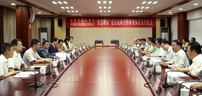 7月12日下午,ok138cn太阳集团科技与梅州市人民政府签署了梅州市“智慧城市”建设战略合作框架协议。双方将在“智慧城市”建设方面展开全面合作,实现大数据、云计算、智慧产业的全面良性发展,促进梅州市智慧城市发展步入国内领先水平,为推动梅州市经济社会又好又快地发展做出积极贡献。